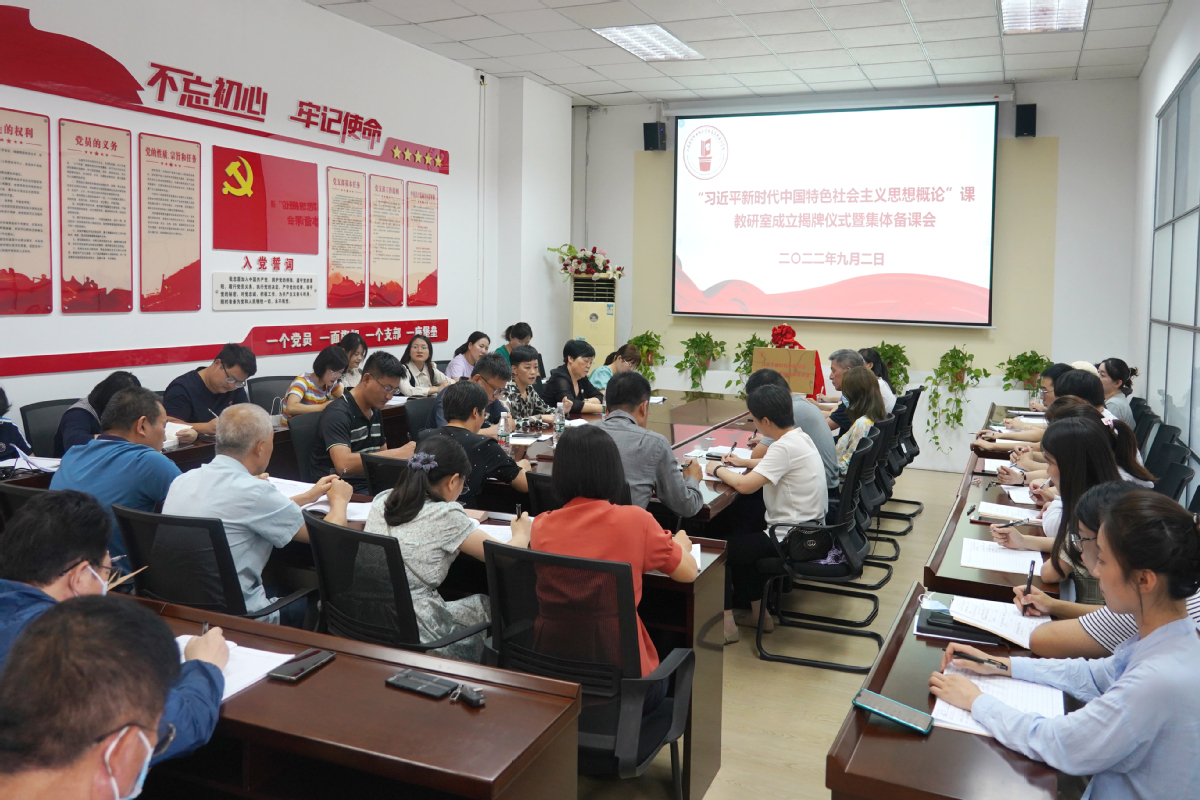 william威廉英国官网利用暑假时间精心组织教师培训、实践研修等工作,从教师中选拔骨干力量组建教学团队,常态化开展教研活动,为秋学期开设好“习近平新时代中国特色社会主义思想概论”课做好各项准备工作。教研室揭牌仪式完成后,马院骨干教师进行了“习近平新时代中国特色社会主义思想概论” 课集体备课研讨。