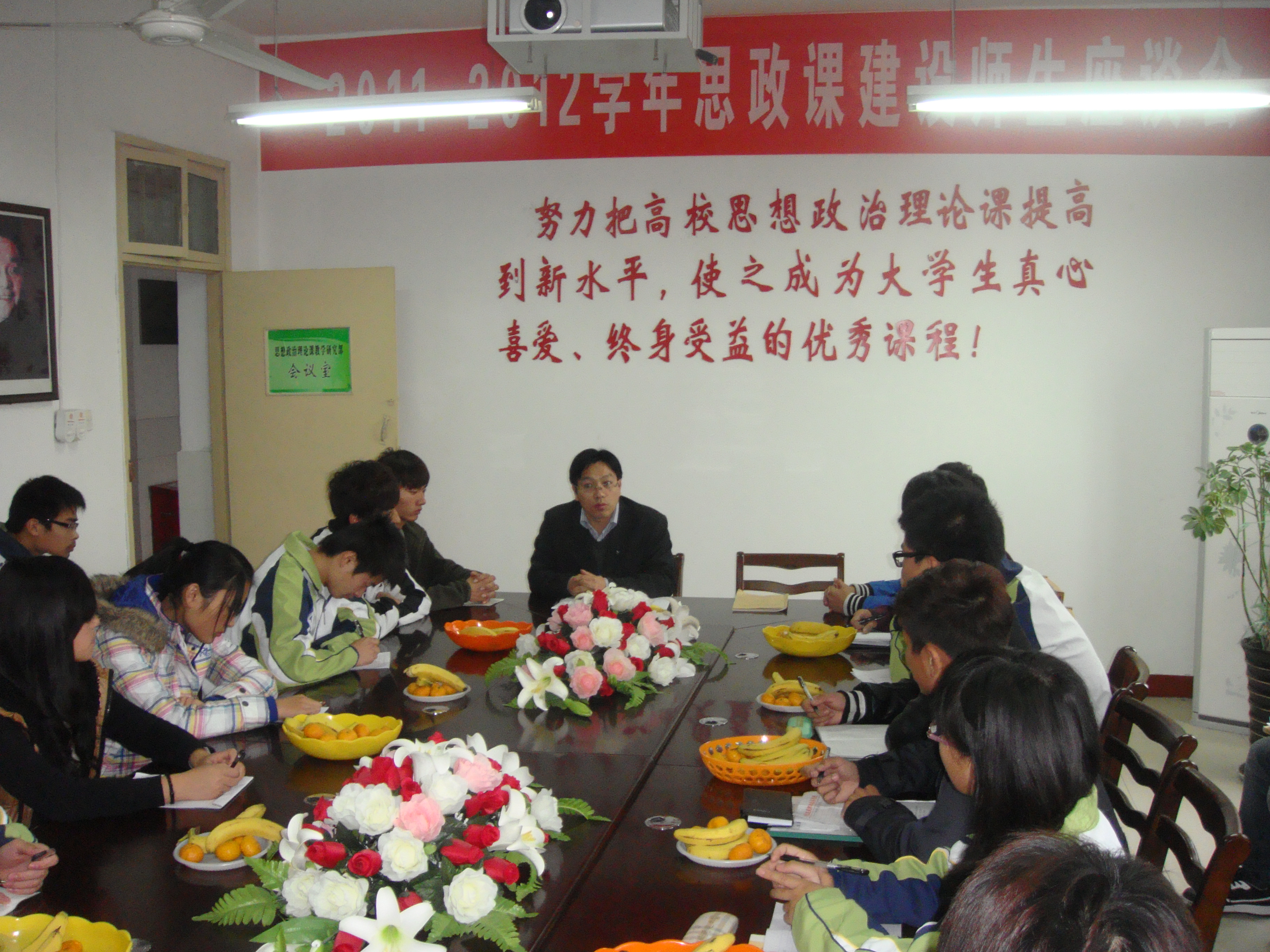 为了解思政课教学中存在的问题,进一步提高思政课的课堂效果和思政教育的实效性,2011年11月8日下午16:00,在思政部会议室召开了思想政治理论课建设师生座谈会。