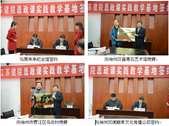 10月31日上午10点,在公司视频会议室思政部成功举办了江苏建院思政课实践教学基地签约授牌仪式。公司党委副书记、纪委书记张登宏教授出席了本次仪式,党委宣传部、教务处相关负责同志和思政部全体教师参加。原徐州市文联副主席王勇先生应邀参加、徐州汉画像石艺术馆梁勇馆长、淮安周恩来纪念馆王旭馗副馆长、“中国十佳小康村”徐州市贾汪区马庄村孟庆喜书记、徐州汉闻慈孝文化传播有限公司李孝天总经理等签约基地领导出席了活动。仪式由思政部主任主持。