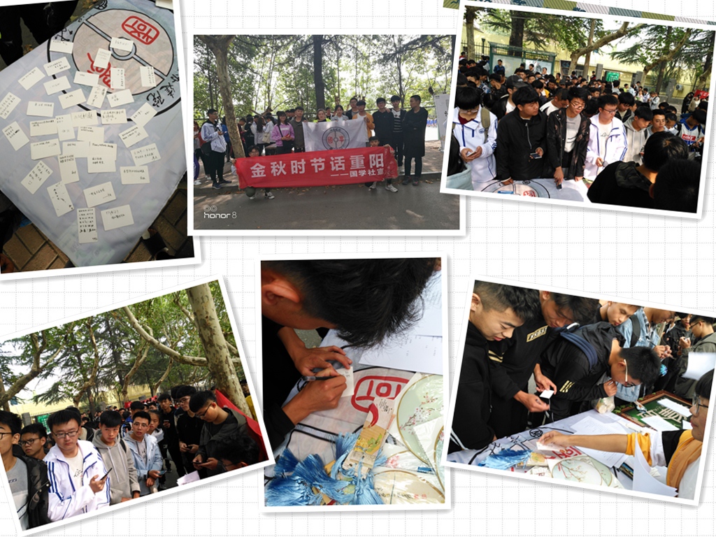 为了让同学们了解重阳节的由来、发展和习俗,10月17日中午,由公司指导的国学社社团主办的"金秋时节话重阳"活动在林荫大道正式拉开帷幕。重阳寄语、重阳知识问答以及国学知识竞猜活动在现场有序进行,同学们陆续从各处赶来参加活动,或是写下对家人的真情祝福,或是踊跃的参加知识问答,现场人潮拥挤,气氛轻松愉悦。