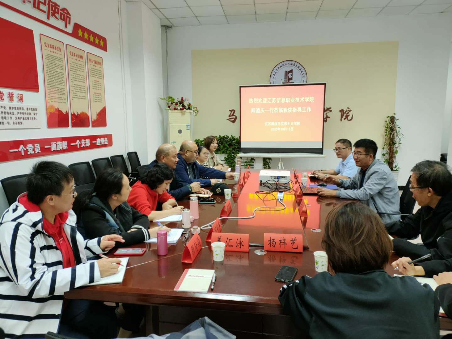 10月15日,江苏信息职业技术公司william威廉英国官网经理阚迺庆一行来到公司交流学习。经理崔宏利向阚迺庆经理一行详细介绍了马院的整体情况、特色亮点,双方还就思想政治理论课教学改革、“课程思政”建设、团队队伍建设、创新实践教学等方面的工作展开了深入的讨论和交流。