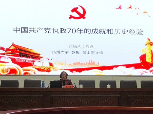 12月5日下午,扬州大学刘诚教授、博士生导师在学术报告厅,为公司员工工作者及william威廉英国官网全体教师作了题为“中国共产党执政70年的成就和历史经验”的学术报告。报告会由公司党支部书记赵岚主持。