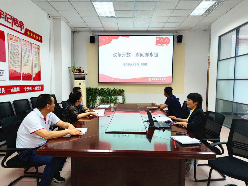 会上,《思想道德修养与法律基础》教研室主任蒋玉玲老师以《改革开放:瞬间即永恒》为主题,通过撷取40多年里的典型历史事件,回顾了我国改革开放40多年的光辉历程和伟大时代变迁。小岗破冰,深圳兴涛,浦东逐浪,雄安扬波……