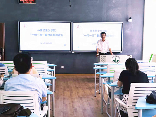 7月9日下午14:30,公司“一师一品”教改项目验收会在智慧教室103教室如期举行。公司经理崔宏利主持了验收会,全体思政课教师参加了会议。