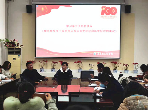12月21日下午14:00,公司党支部书记赵岚带领全体教师学习了《中共中央关于党的百年奋斗重大成就和历史经验的决议》。赵书记从《中共中央关于党的百年奋斗重大成就和历史经验的决议》的七个部分详细阐述了《决议》在内容上的三个特点,并从六个方面重点阐述了如何理解《决议》的厚重历史分量,即:一、学习《决议》,深刻认识党百年奋斗的伟大成就,有利于进一步增强实现中华民族伟大复兴的历史自信。二、学习《决议》,深刻认识“两个确立”的决定性意义,有利于进一步增强战胜各种风险挑战的历史定力。三、学习《决议》,深刻认识党的十八大以来的历史性成就和历史性变革,有利于进一步用好新时代积累的历史财富 。四、学习《决议》,深刻认识党百年奋斗的历史意义,有利于进一步认清中国共产党的历史贡献和历史方位 。五、学习《决议》,深刻认识党百年奋斗的历史经验,有利于进一步把握历史规律汲取历史智慧 。六、学习《决议》,深刻认识新时代的中国共产党,有利于进一步洞悉历史发展大势掌握历史主动。
