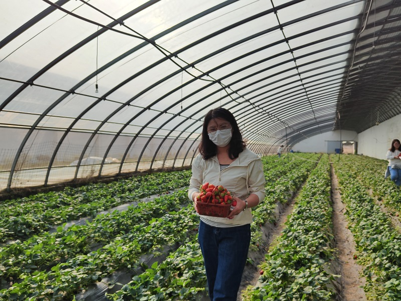 三月暖阳,春天如期而至。3月11日下午,“三八”妇女节草莓采摘体验活动顺利开展。