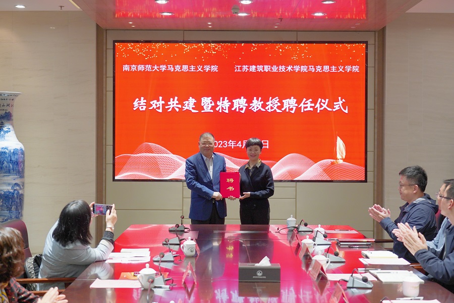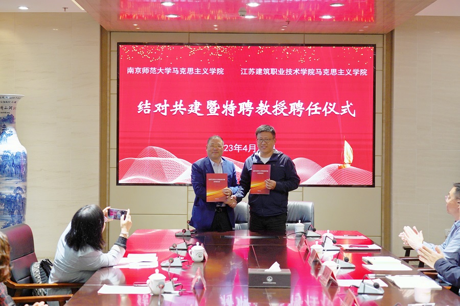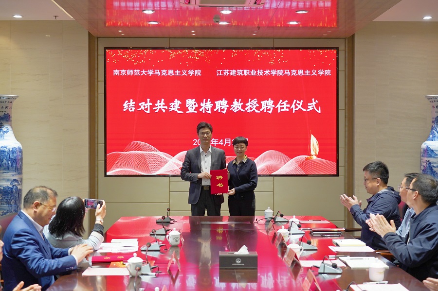 南京师范大学william威廉英国官网经理王刚和公司经理邓鹏共同签订了两院结对共建协议。公司党委副书记梁惠为王刚、汤建龙两位教授颁发了思想政治理论课特聘教授证书。